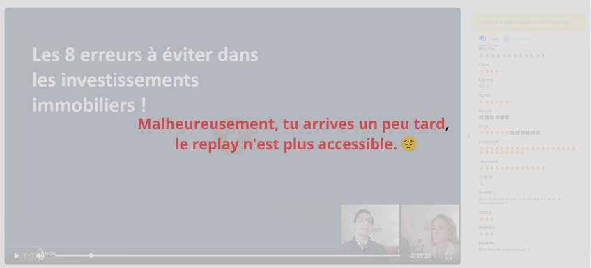 Le REPLAY de la séance de rattrapage disparaîtra dans :